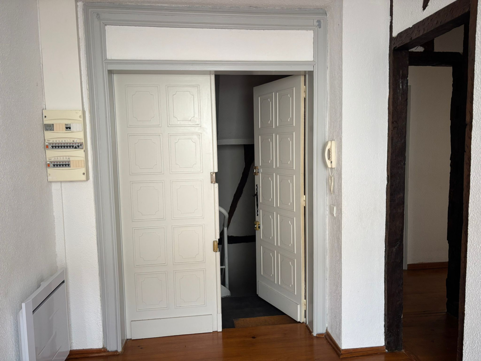 Appartement T3 au 1er étage comprenant une grande pièce à vivre avec une cuisine ouverte sur le séjour , deux chambres , une salle d'eau et un cellier .