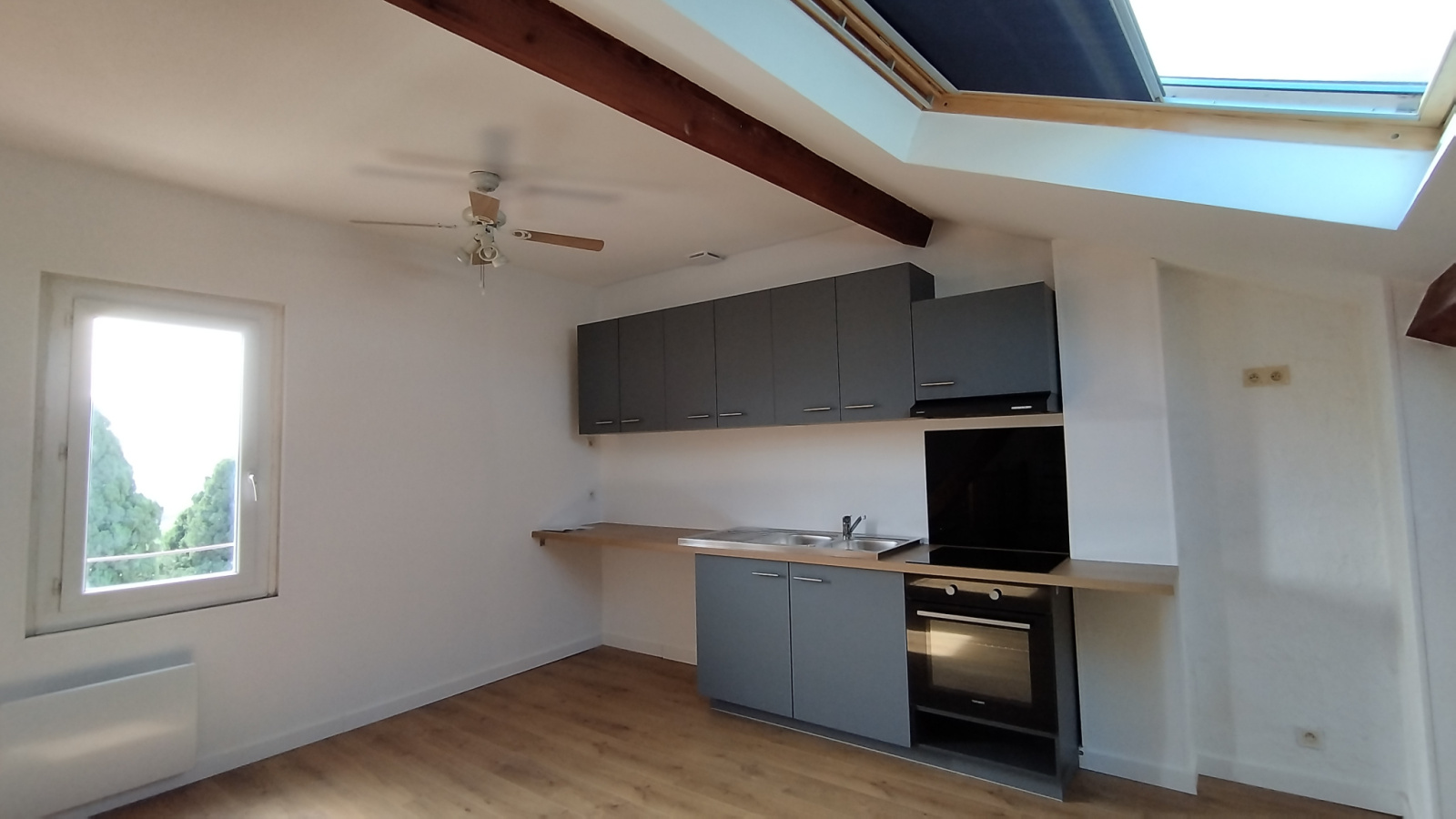 Il se compose d'une grande pièce à vivre avec une cuisine ouverte , une chambre avec placard donnant sur une salle d'eau avec WC.