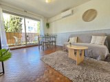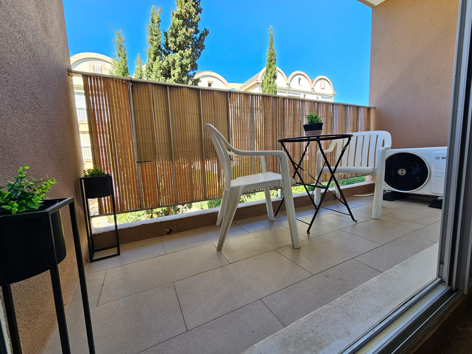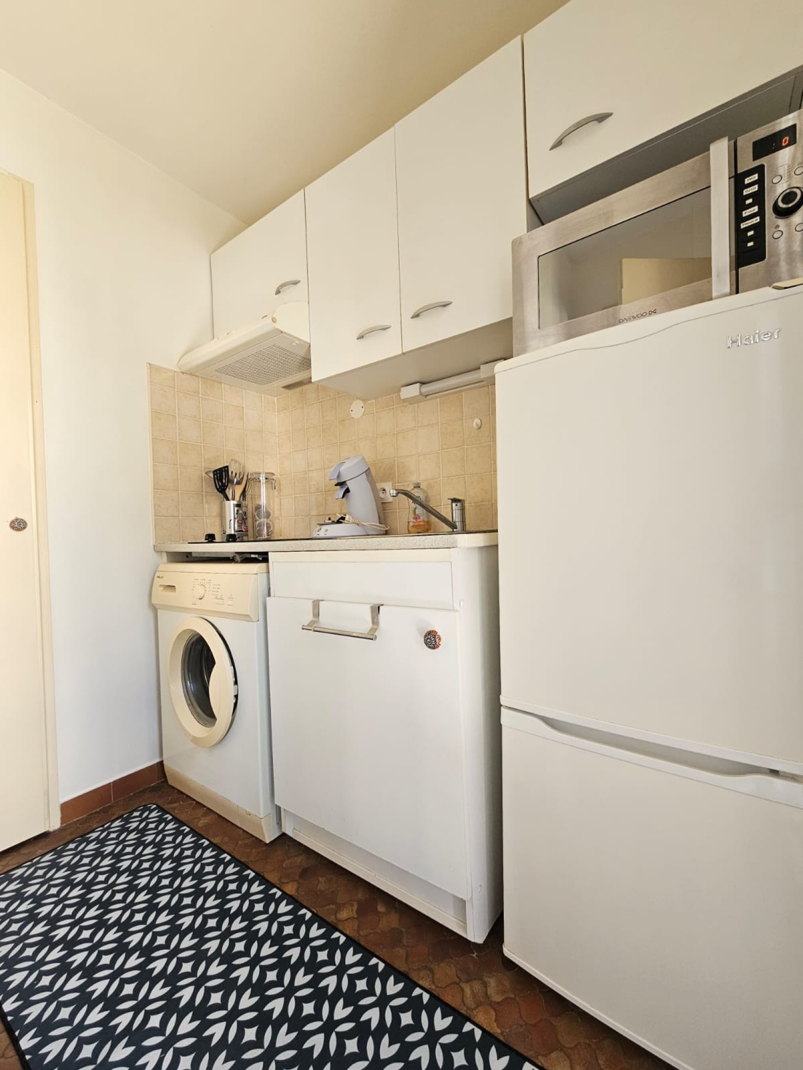 Appartement T1 meublé et climatisé situé au 1er étage de la Résidence Les Maisons de la plage se composant d’une salle d’eau avec wc, d'un séjour donnant accès balcon, une cuisine séparée équipée et meublée avec un cellier aménagé.