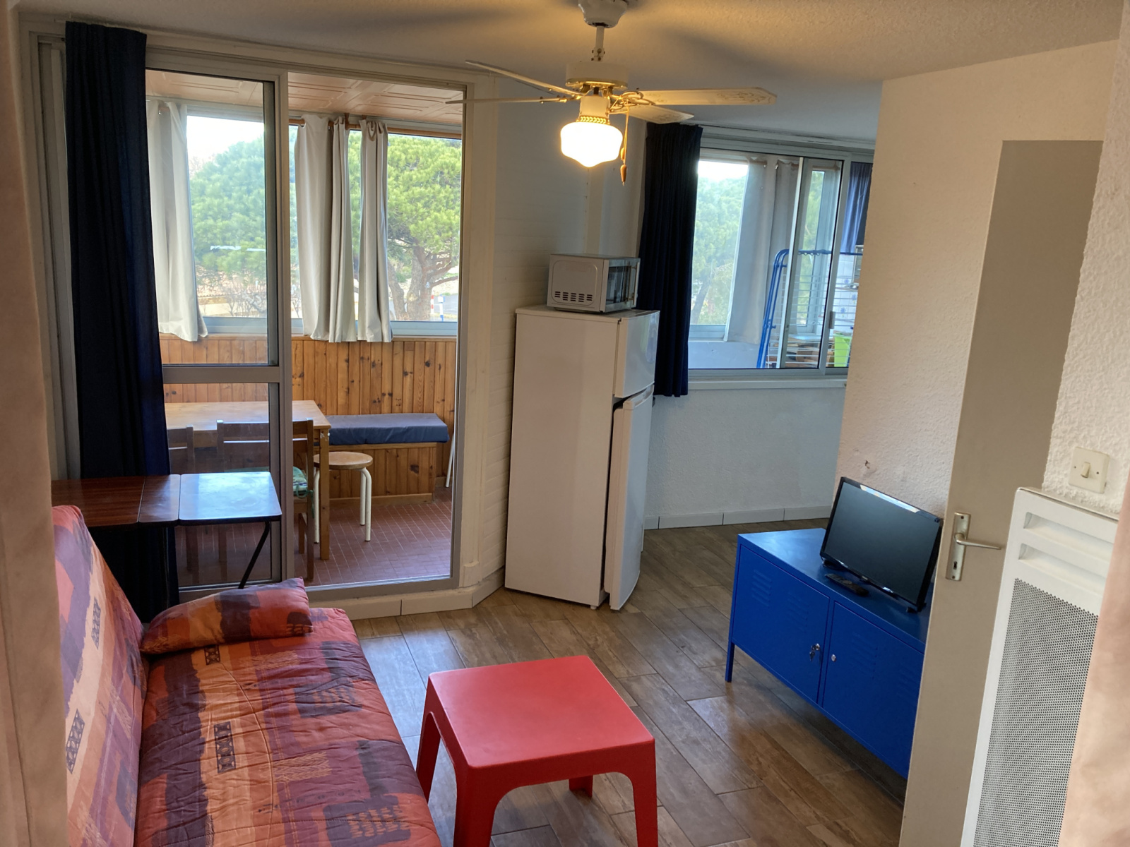 Appartement T1 cabine meublé avec loggia fermée située Résidence du Port, sur la rive droite du port de plaisance de Gruissan.