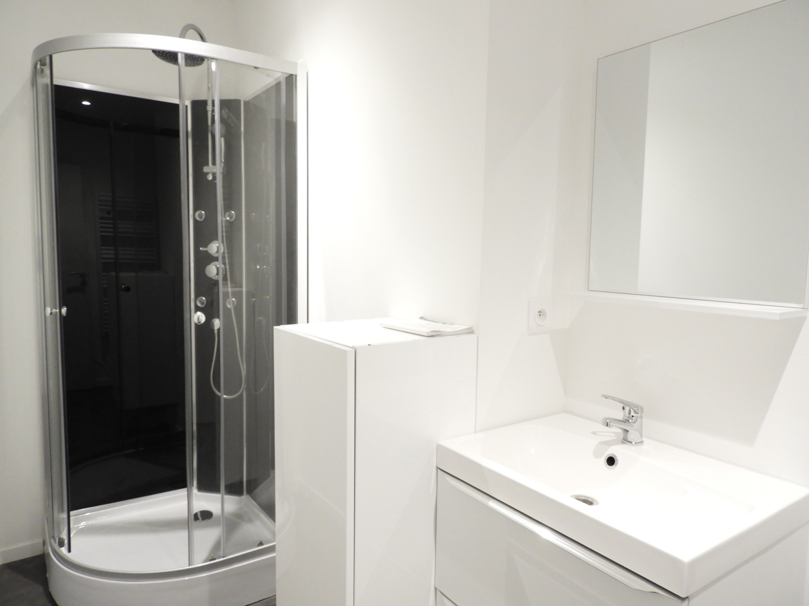 L'appartement comprend une cuisine intégrée et équipée, une salle d'eau et une pièce à vivre. Agencement idéal et rénovation de qualité.
