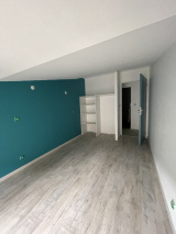Appartement comprenant une entrée avec placard, une pièce à vivre avec une cuisine ouverte et équipée, un couloir avec placard donnant accès sur deux pièces sous rampant (moins de 6m² habitables) avec espace de rangement, un Wc séparé et une salle d'eau.