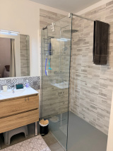 - Espace piscine récent aux plages en bois, propice à la détente,