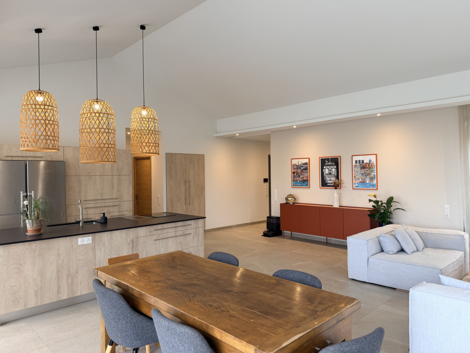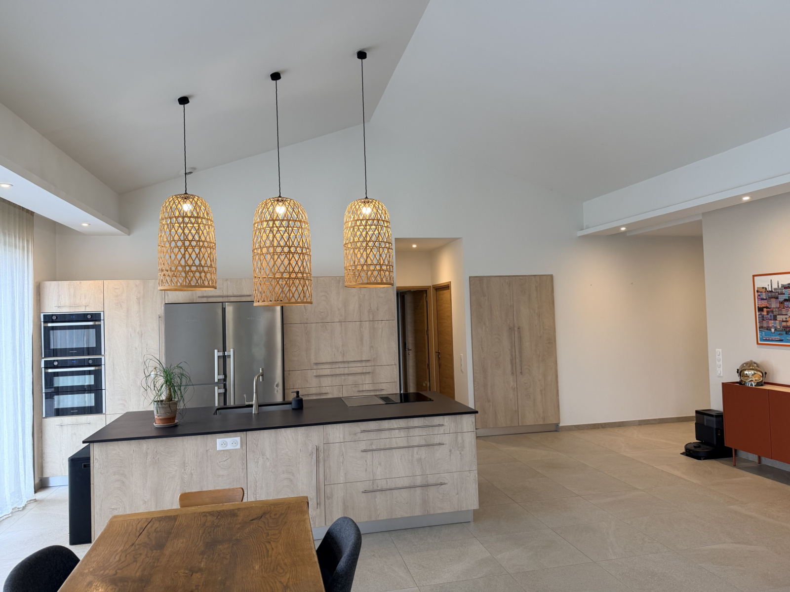 Un espace convivial, ouvert sur la terrasse et la lumière, idéal pour recevoir.