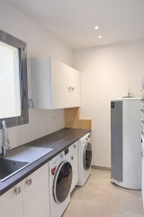 Une buanderie spacieuse vient parfaire la fonctionnalité de cette maison.
